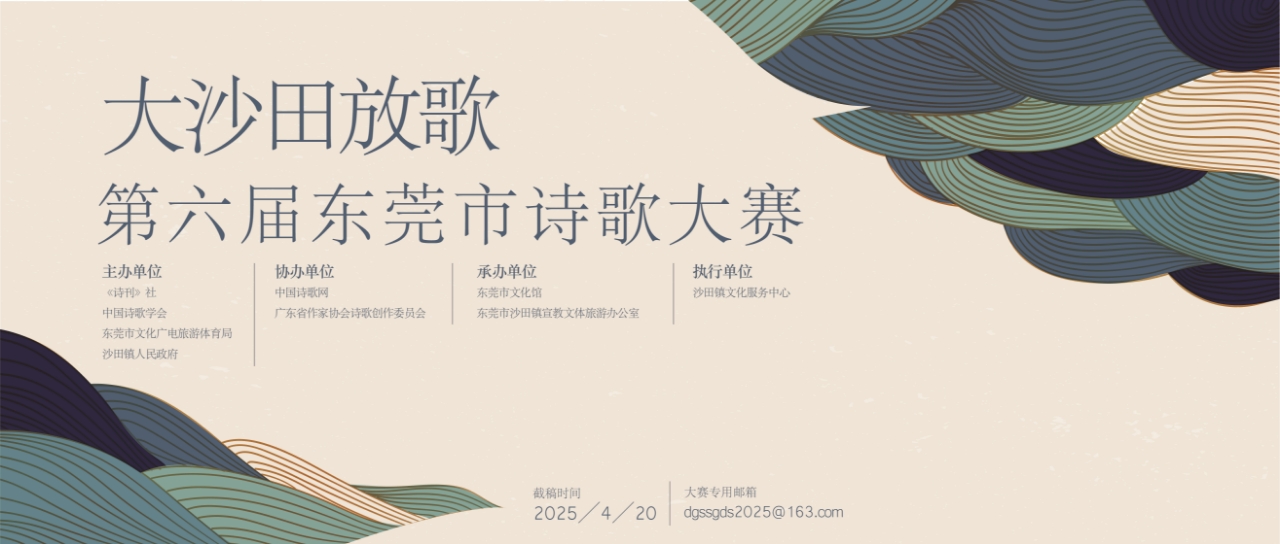 為全面貫徹落實(shí)黨的二十屆三中全會精神,深入學(xué)習(xí)貫徹習(xí)近平文化思想,聚焦東莞文化強(qiáng)市建設(shè)部署,擦亮東莞“中國詩歌之城”城市名片,鞏固東莞市詩歌大賽制度化賽事效應(yīng),同時以文化賦能“百千萬工程”,擴(kuò)大“大沙田放歌”詩歌品牌的影響力,合力塑造“一鎮(zhèn)一品”文化品牌,促進(jìn)東莞生態(tài)文化、詩歌文化與全域旅游的融合發(fā)展,由《詩刊》社、中國詩歌學(xué)會、東莞市文化廣電旅游體育局、沙田鎮(zhèn)人民政府聯(lián)合主辦的“大沙田放歌”第六屆東莞市詩歌大賽于2025年3月啟動。