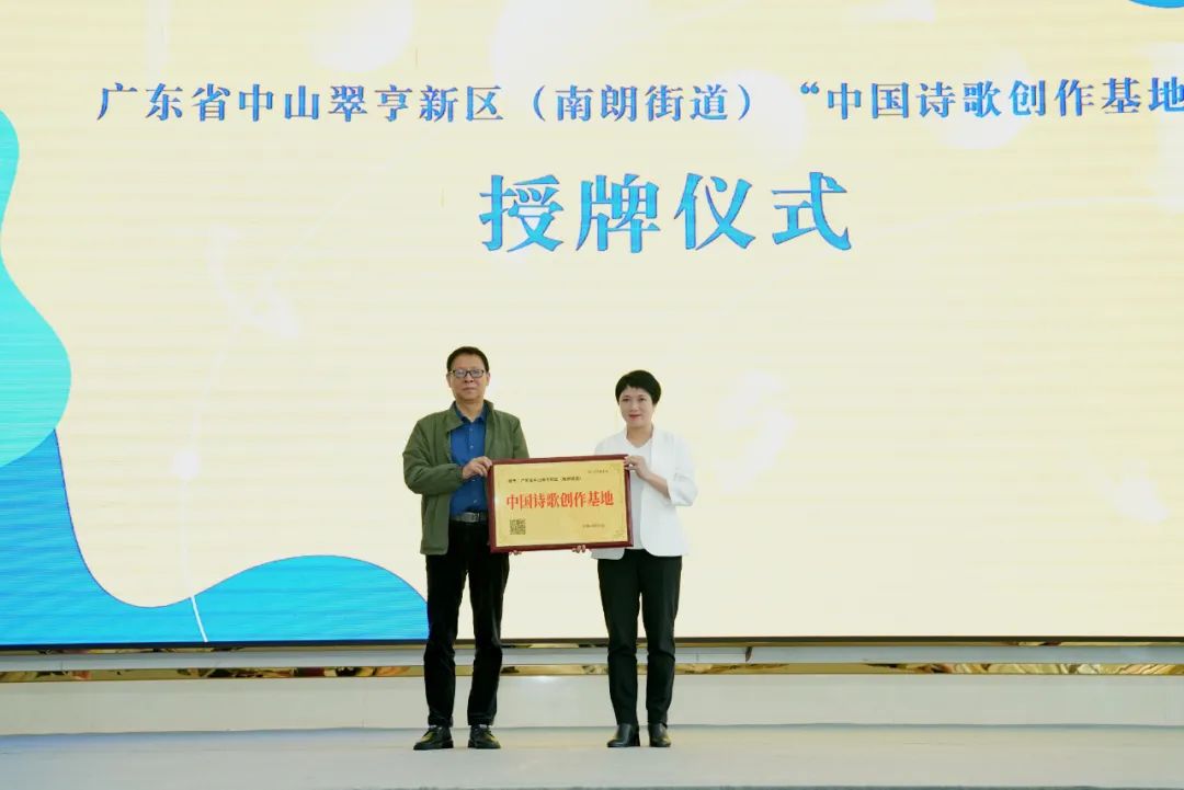 4月19日上午,中山南朗(沖口)詩歌文化藝術(shù)系列活動在中山市翠亨新區(qū)(南朗街道)沖口村開幕。當天,中國詩歌學會向翠亨新區(qū)(南朗街道)授予“中國詩歌創(chuàng)作基地”牌匾;中山市作家協(xié)會向沖口村授予“沖口作家村”牌匾。
